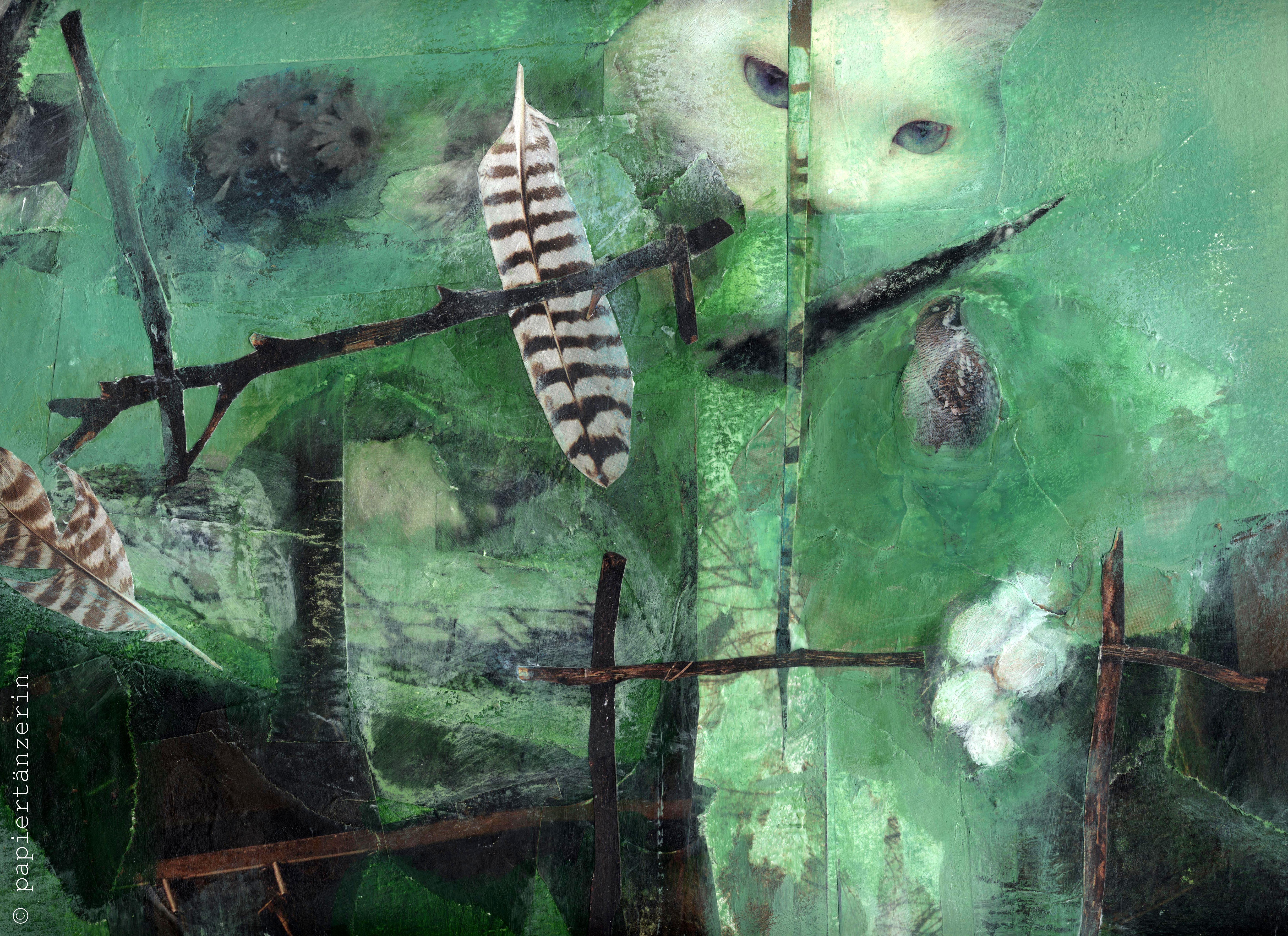 Katze & Vogel 5. Dezember 201420. Oktober 2016 | Ina Stachat handgemachte Collage, mixed media: Acryl, Gesso, Pastellkreide, recycelte Zeitschriften. Merken