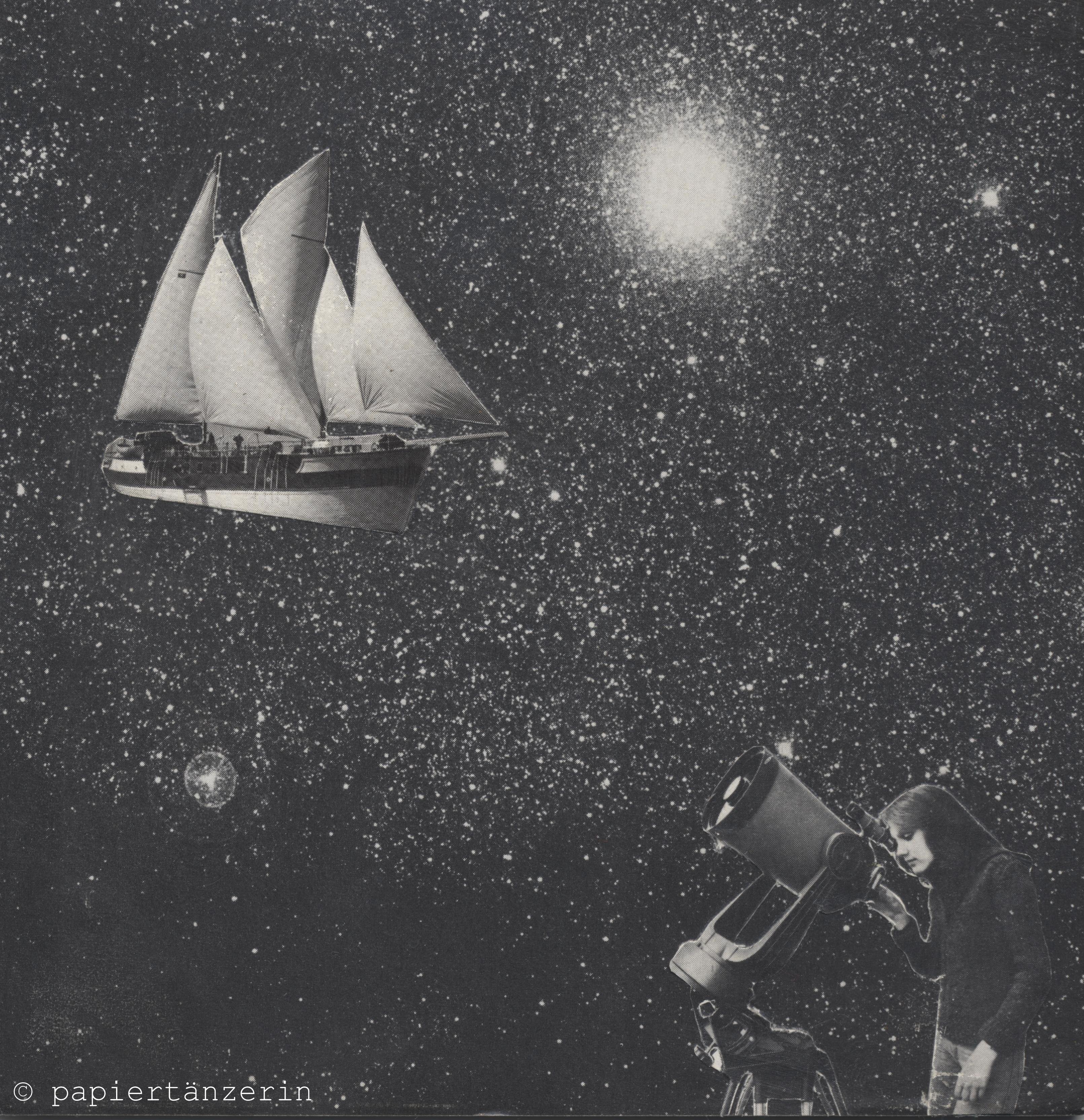 sternenschiff 12. Dezember 2014 | Ina Stachat A certain darkness is needed to see the stars. handgemachte Papiercollage.