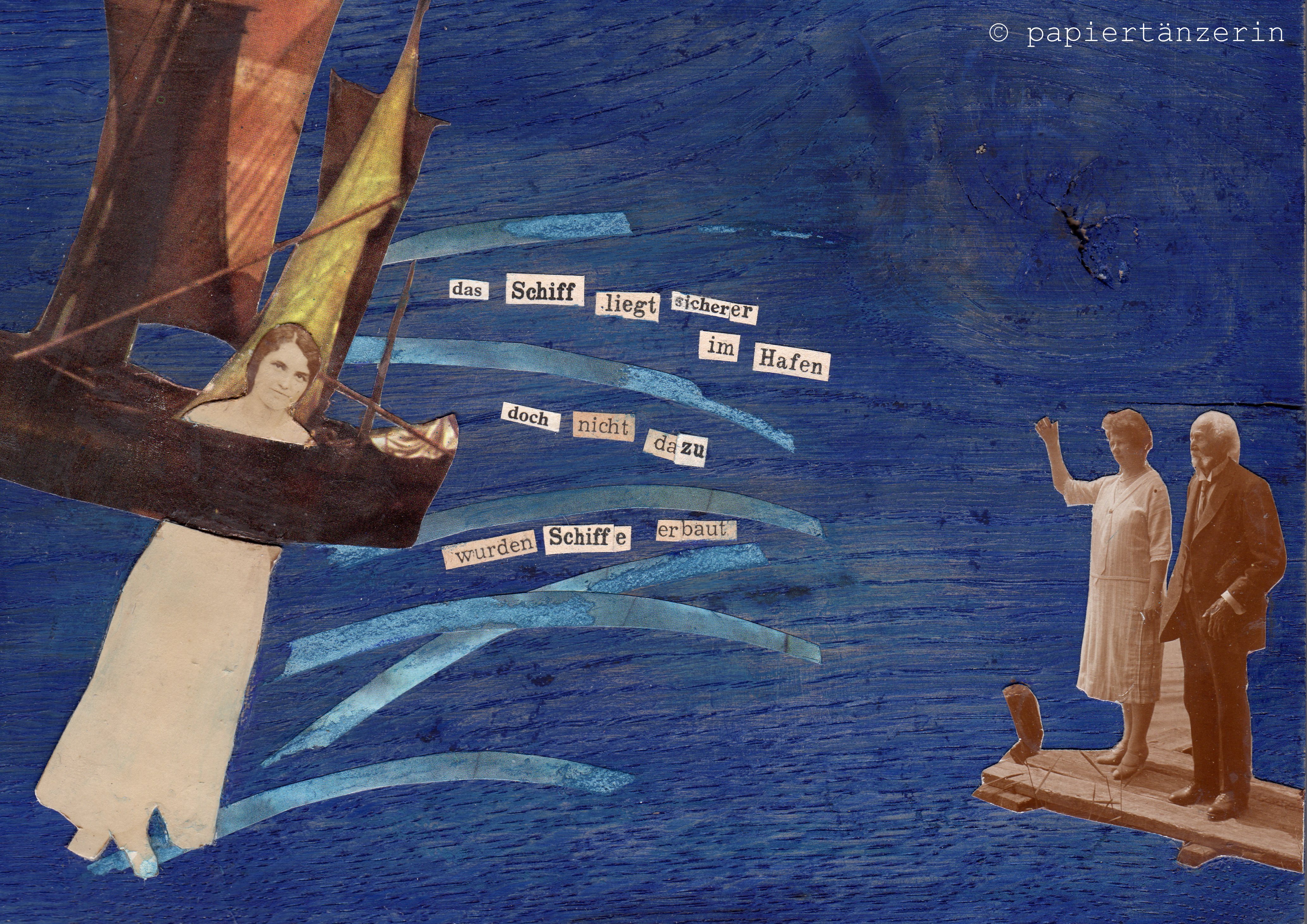 Ahoi 6. Juli 201520. Oktober 2016 | Ina Stachat handgemachte Collage auf Holz. Vintage-Fotos, Worte aus alten Büchern, Zeitungsschnipsel, lasiertes Holz, Aquarellbuntstift. Merken