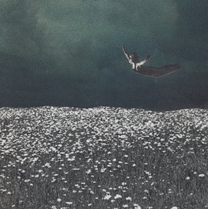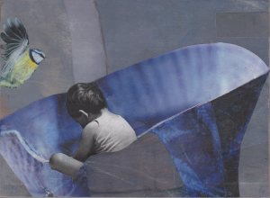handgemachte Papiercollage auf Holz (15 x 15 cm).