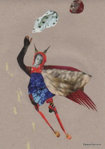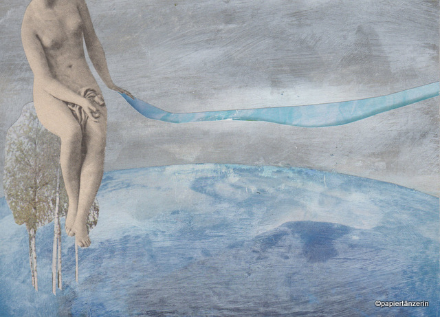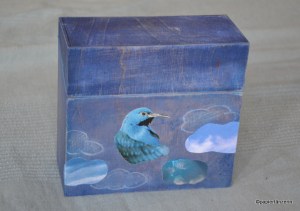 handgemachte Papiercollage auf Holz (10 x 10 cm).