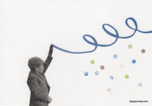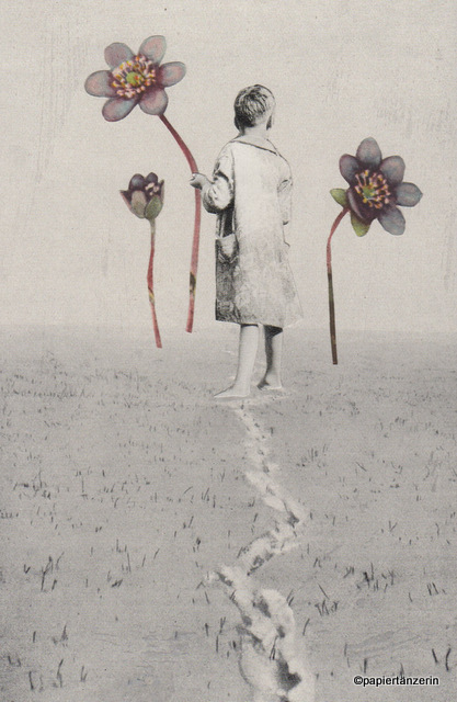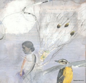 handgemachte Collage, mixed media auf Holz (15 x 15 cm).